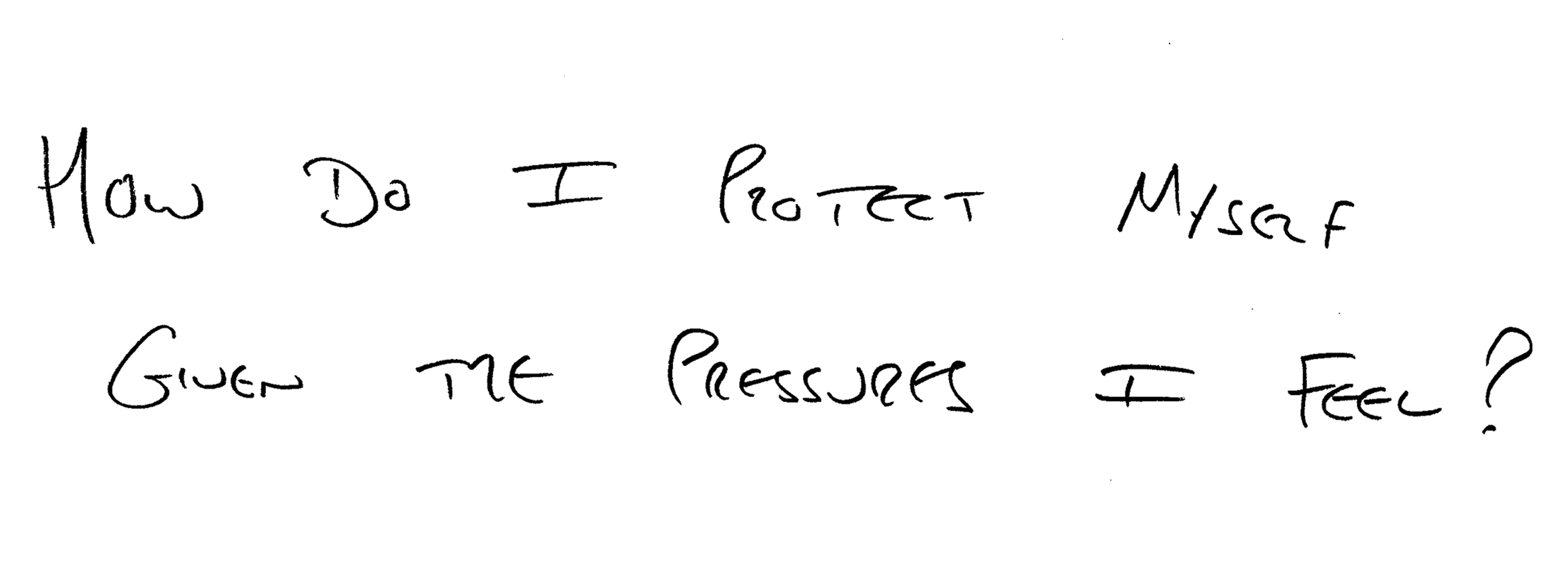 Visitors to the gallery were invited to ask the artist, Marcus Coates questions that preoccupied them and struggled to answer themselves. This painting is his answer to the question, “How do I protect myself given the pressures I feel?”